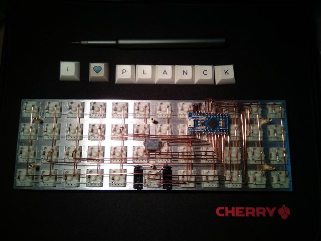 将定位板翻过来,轴脚朝上,卫星轴在靠近身体的方向。可以看到每个轴体的右边那个脚(我使用了下灯位)是比另一个脚更接近轴体中间的突出位置。拿出0.8mm漆包线,拉直(非常重要,毕竟要好看),比划一列(竖着4个)右边轴脚的长度,稍微长一点点,剪断。然后用小锉刀,将接触到轴脚的位置锉一下,在漆包线上锉出1mm左右的开口,建议是一圈都锉出来。至于锉到什么程度,就是漆包线的油漆锉掉就性。建议使用两段漆包线,先锉开一段,放一起,用电烙铁焊接一下,正常是直接上锡。如果不能焊上,或出现黑色物质,就是漆皮还没有锉开。耐心地将14列都焊接完成。中间的2u位置那个轴体,我是使用翻过来的左数第7列一起的,也就是正面使用时和字母B连一起。这一列连接是,因为有卫星轴钢丝,所以要把导线向上走一下,看图体会,如何弯好看,看自己审美吧。 ![Uploading IMG20171111095322.jpg…]()