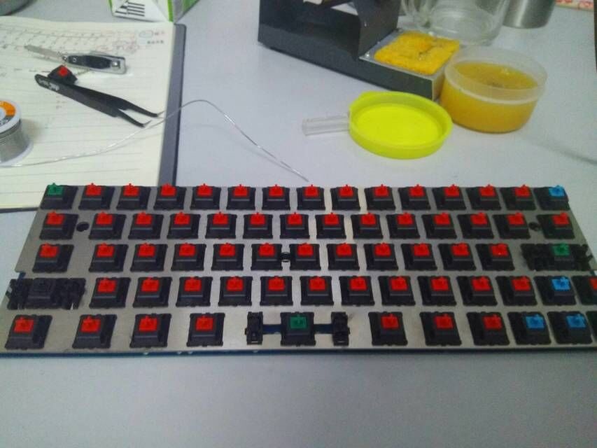 - 需要确认的按键用了青轴(ESC,Backspace,Up,Down,Left,Right)和绿轴(Enter,Space,Lshift)。